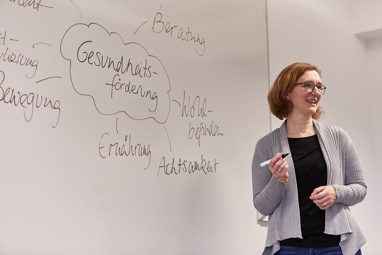 Personenzentrierte Gesundheitsförderung, betriebliche Gesundheitsförderung, kommunale wie auch bildungszentrierte Gesundheitsförderung – dein Studium bereitet dich breit auf die beruflichen Handlungsfelder der Gesundheitsförderung vor. Und zwar nicht nur theoretisch, sondern auch unmittelbar praxisverschränkt! Zwei Praktika von 8 und 13 Wochen sind fest im Lehrplan integriert.